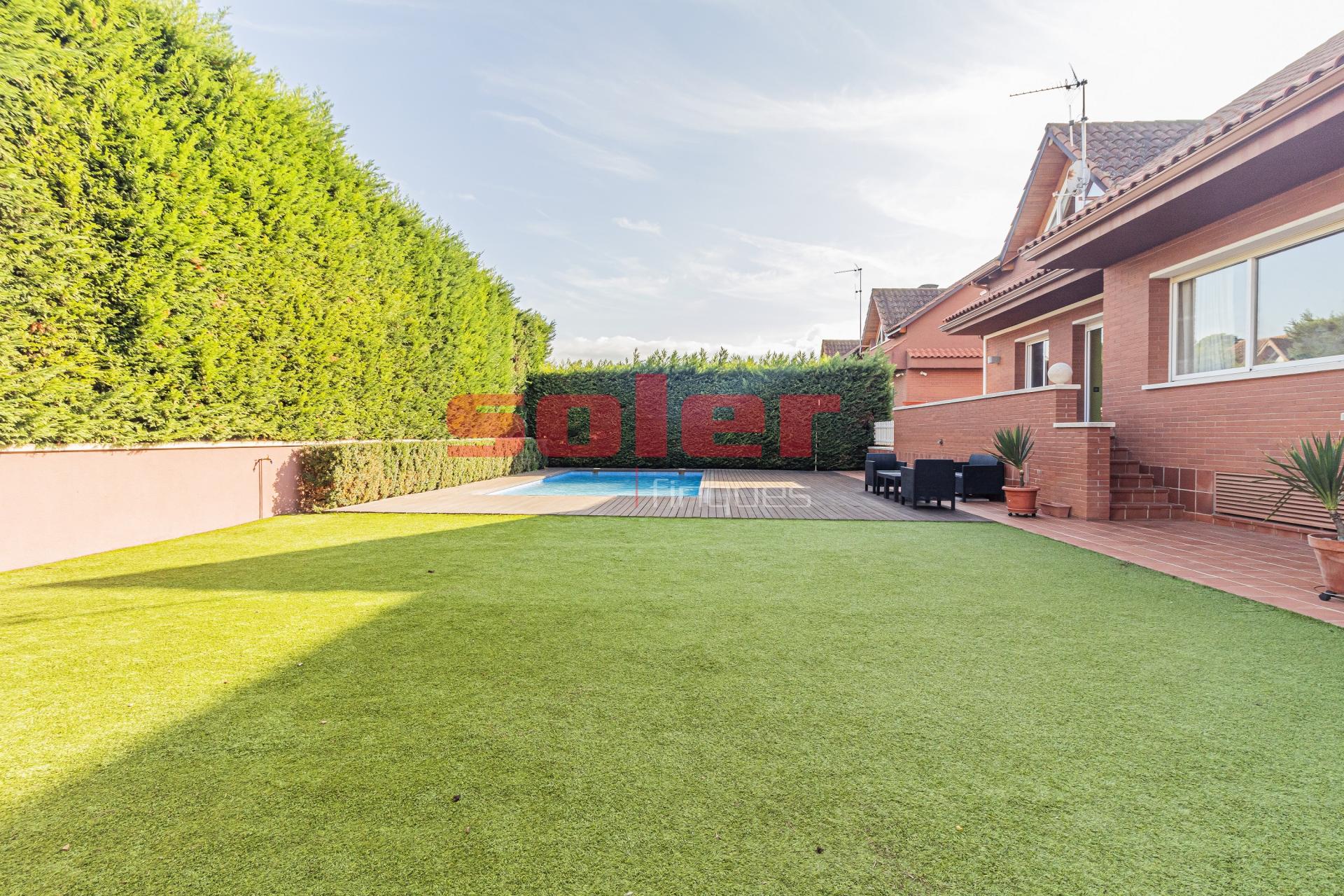 Entorno y exteriores Parcela ajardinada que rodea toda la casa. Amplias zonas de descanso y comedor al aire libre. Piscina privada rodeada de tarima de madera natural. Orientación a cuatro vientos, con luz solar durante todo el día. Características principales Superficie construida: 535 m Parcela: 616 m Año de construcción: 2007 Estado de conservación: excelente Materiales: obra vista, suelos de mármol y parqué, carpintería de aluminio, acabados de alta calidad. Distribución y espacios Planta baja: Elegante recibidor con escalera central. Zona de noche con tres dormitorios dobles y un baño completo. Zona de día con: o Salón independiente con salida directa al jardín. o Comedor luminoso. o Cocina office amplia y funcional. o Área de servicio con dormitorio, baño y lavandería. Acceso exterior desde la mayoría de las estancias. Planta superior: Suite principal con amplio vestidor y baño completo con bañera y ducha. Gran sala abuhardillada multifuncional, ideal como despacho, sala de juegos o posibilidad de crear uno o dos dormitorios adicionales. Techos de madera vista que aportan calidez y carácter. Equipamiento Calefacción de gas natural por radiadores. Aire acondicionado. Armarios empotrados en todas las estancias. Piscina privada. Destacados Vivienda completamente exterior. Excelente luminosidad y ventilación natural. Privacidad, amplitud y confort en una construcción sólida y moderna. En Soler Finques somos API colegiados. Nuestros valo